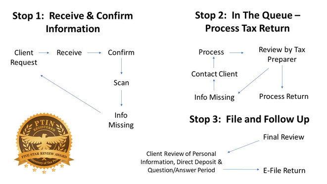 We believe communication should be clear and concise so we outline our working conditions and are continually improving our own process flow. Our goal is to ensure we use our knowledge and years of experience to find you every potential deduction and credit within the law to reduce your tax liability. However, we also take measures to ensure we provide an accurate return that is as “audit-proof” as possible. Where other firms may accept estimates or whatever numbers are provided, we require back-up documentation to help you, our client, be protected in the case of an audit and ensure you are in the best shape possible. We also use an encrypted portal to ensure the transfer of information is secure, safe while also convenient for our out-of-area clients. Finally, we take our time with our tax returns, continually review the information to ensure everything is accounted for, and that our system accurately computed the data we entered. We don’t trust the software; it is a tool that we then double check to ensure accuracy and integrity of the process. Sometimes this is not a fast process and a return can take weeks to complete depending on how complete the initial receipt of information is and depending on how many questions arise during the review process. We always strive to complete tax returns as quickly as possible, but without “rushing” the process as we never want to sacrifice quality for speed.